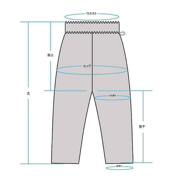 ウエスト85cm~110cm、丈112cm、ヒップ119cm、股上36cm、股下79cm、裾周り39cm、もも周り74cm