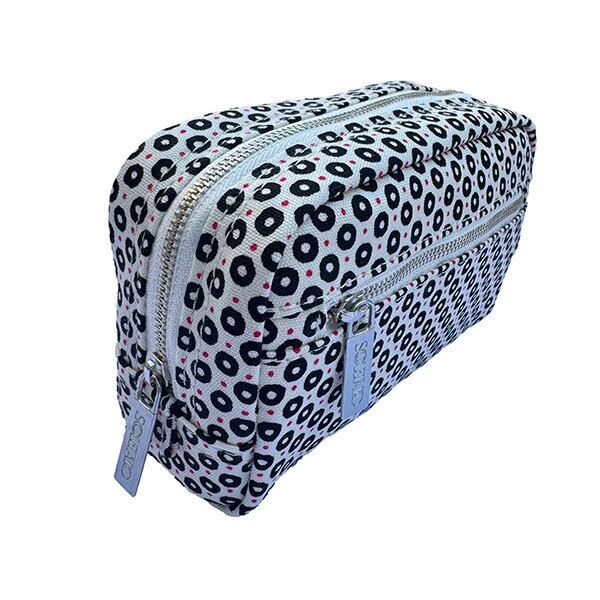 オリジナルの鮮やかなプリントが目を惹く、コットンオックス素材のポーチ。