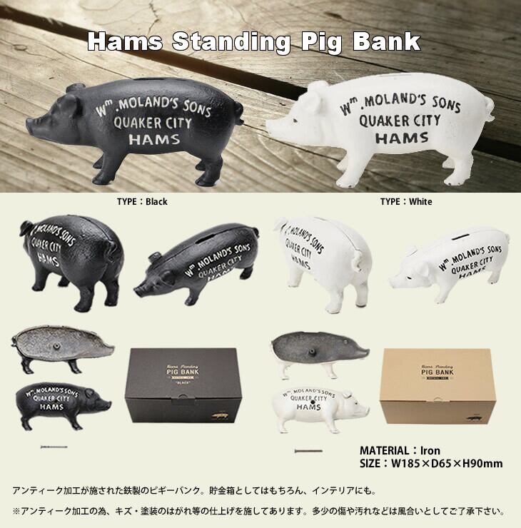 Hams Standing Pig Bank ハムズスタンディングピッグバンク 全2色 貯金箱 アイアン アンティーク加工 豚 DETAIL オブジェ レトロ