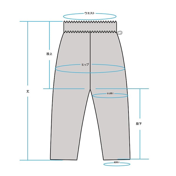 ウエストはゴムで、ドローコードでサイズ調整可能。