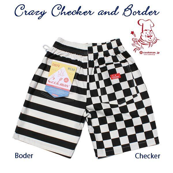 Chef Short pants Crazy Checker and Border シェフ ショートパンツ クレイジーチェック&ボーダー UNISEX 男女兼用 Cookman クックマン イージーパンツ アメリカ