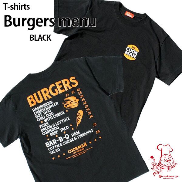 Cookman T-shirts Burgers menu Black クックマン Tシャツ バーガーメニュー ブラック UNISEX 男女兼用 アメリカ