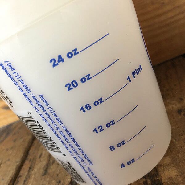 オンス、リットル、クオート、表記があり容量比較も出来ます。