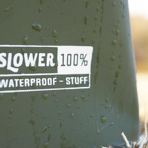 強度と柔軟性のあるEVA樹脂を熱圧着によって100%水を遮断するので、バケツとしても使えるストレージボックス。