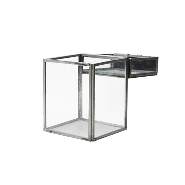 アンティーク加工され古びた風合いがお洒落な、チョークボード付きのガラス製ボックス。