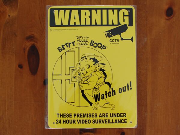 プラスチックサインボード【ベティ 24時間監視中】アメリカン雑貨 ガレージ 看板 インテリア