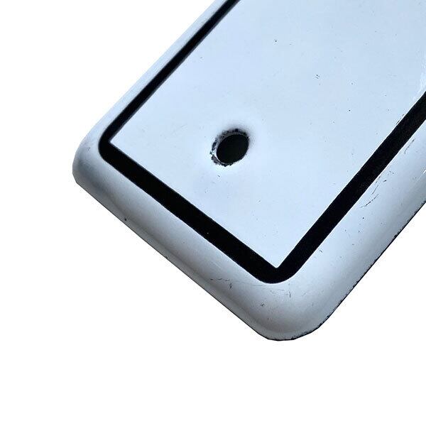 白いエナメルに黒のフォントが落とし込まれた琺瑯サイン。