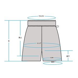 ウエスト60cm~85cm、丈50cm、ヒップ111cm、股上32cm、股下20cm、裾周り60cm、もも周り65cm
