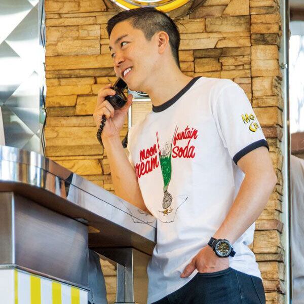 '60s USA Coffee Shop の MOON Cafe でも人気の高いクラシカルなクリームソーダがモチーフのPOPなデザインのTシャツです。