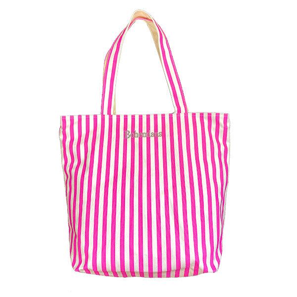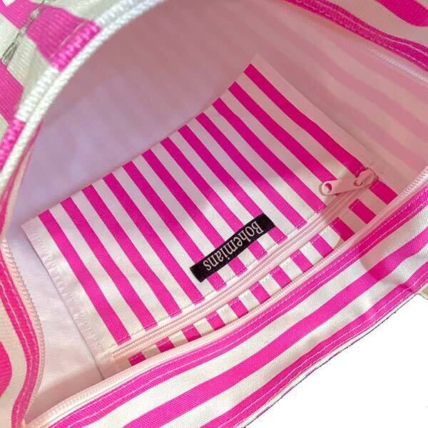 STRIPE ZIP TOTE BAG Pink ストライプ ジップ トートバッグ ピンク ショッピング エコバック BOHEMIANS ボヘミアンズ 日本製