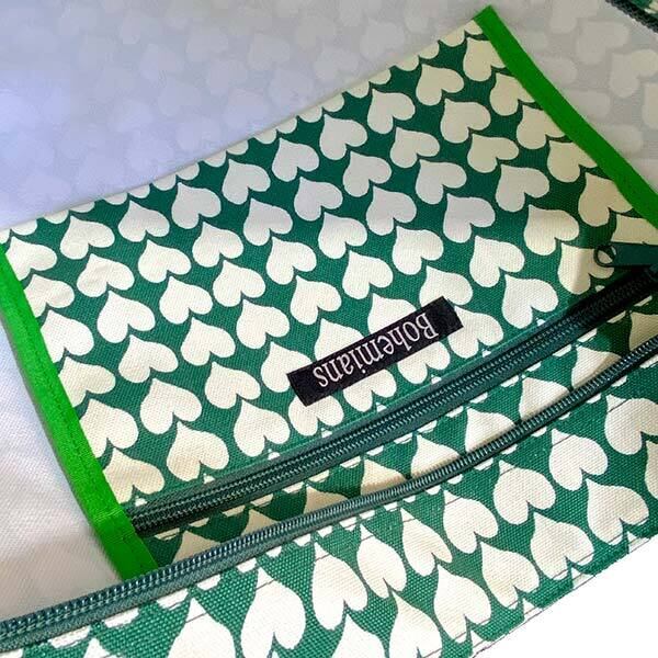 HEART ZIP TOTE BAG Green ハート ジップ トートバッグ グリーン ショッピング エコバック BOHEMIANS ボヘミアンズ 日本製