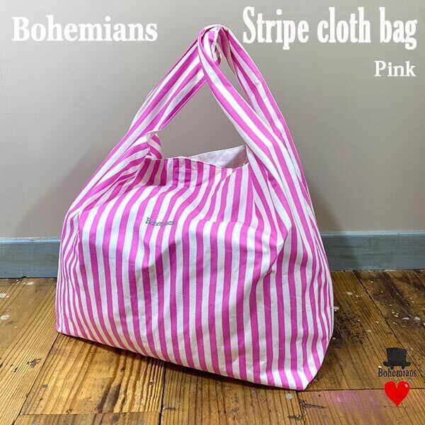 STRIPE CLOTH BAG Pink ストライプ クロスバッグ ピンク ショッピング エコバック BOHEMIANS ボヘミアンズ 日本製