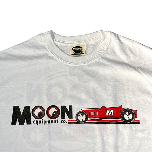 トラディショナルな MOON Equipment co. の Red Roadster がフロントとバックにプリントされたTシャツです。
