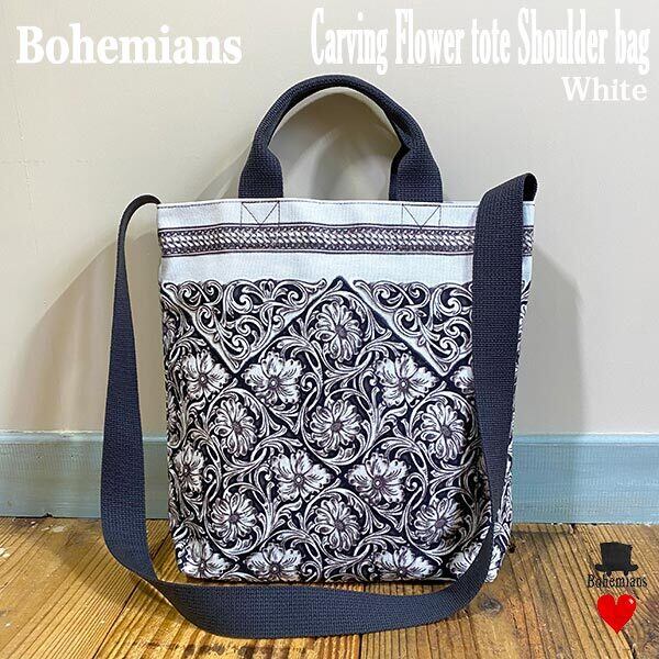 CARVING FLOWER TOTE SHOULDER BAG M WHITE カービングフラワー トート ショルダー バッグ Mサイズ ホワイト BOHEMIANS ボヘミアンズ 日本製