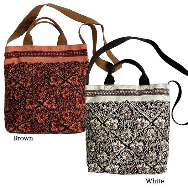 CARVING FLOWER TOTE SHOULDER BAG M BROWN カービングフラワー トート ショルダー バッグ Mサイズ ブラウン BOHEMIANS ボヘミアンズ 日本製