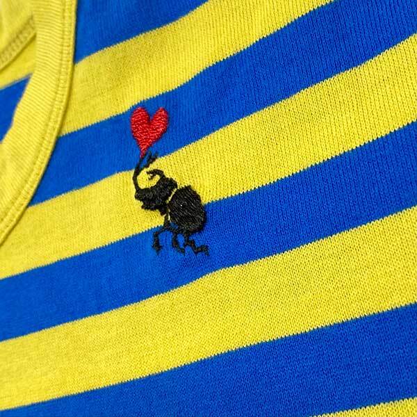 商品説明:ボヘミアンズの定番BEETLE HEART刺繍を施した、スパンリブボーダーTシャツです。