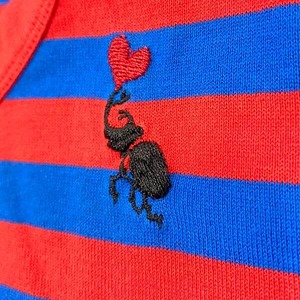 商品説明:ボヘミアンズの定番BEETLE HEART刺繍を施した、スパンリブボーダーTシャツです。