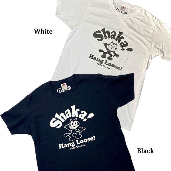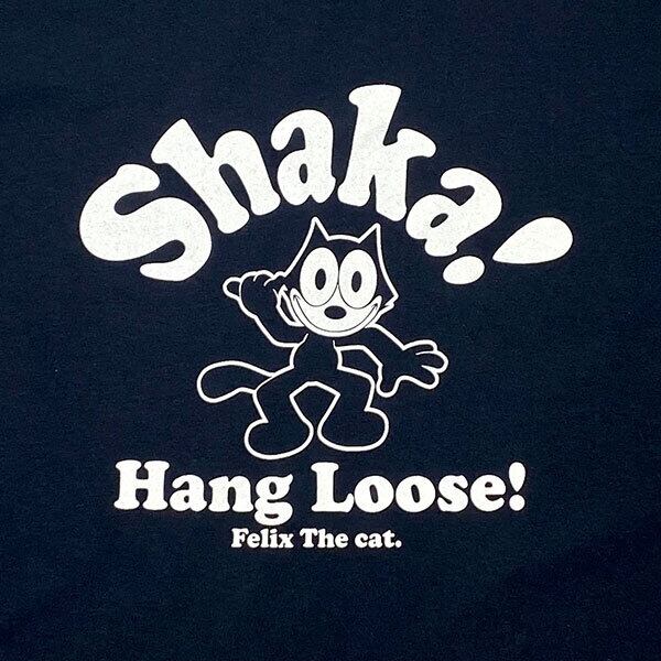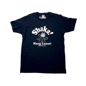 ハワイではおなじみの SHAKA ハンドサインをしているフィリックスがフロントにプリントされた、Tシャツです。