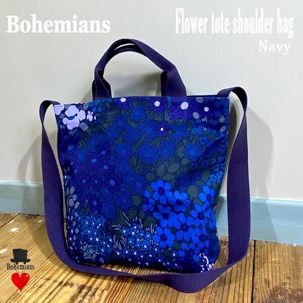 FLOWER TOTE SHOULDER BAG M NAVY フラワー トート ショルダー バッグ Mサイズ ネイビー BOHEMIANS ボヘミアンズ 日本製