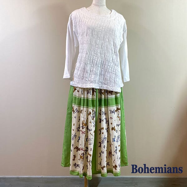 DOG & CATS VIYELLA GATHER SKIRT GREEN ドッグ&キャット ギャザースカート グリーン ビエラ生地 BOHEMIANS ボヘミアンズ