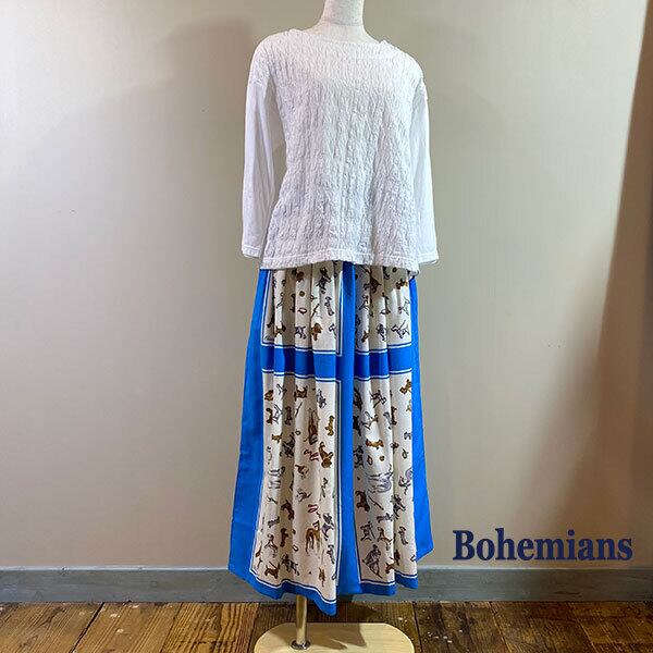 DOG & CATS VIYELLA GATHER SKIRT BLUE ドッグ&キャット ギャザースカート ブルー ビエラ生地 BOHEMIANS ボヘミアンズ