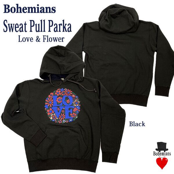 LOVE & FLOWER SWEAT PULL PARKA BLACK ラブ フラワー プルパーカ ホワイト スウェット BOHEMIANS ボヘミアンズ JAPAN