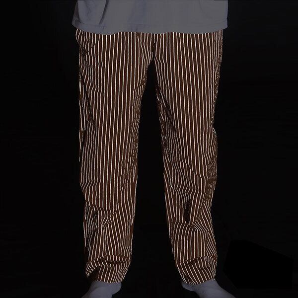 暗闇で強い光が当たるとストライプが反射して光ります。