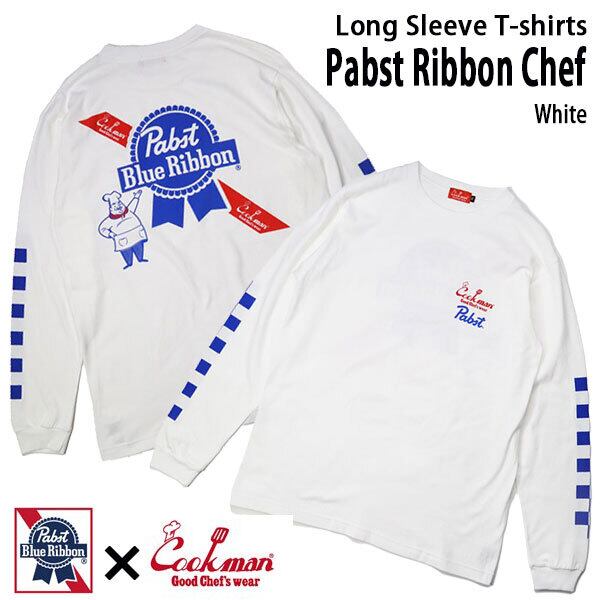 Cookman×Pabst Blue Ribbon Long sleeve T-shirts Pabst Ribbon Chef White クックマン ホワイト 長袖Tシャツ USA UNISEX 男女兼用 アメリカ