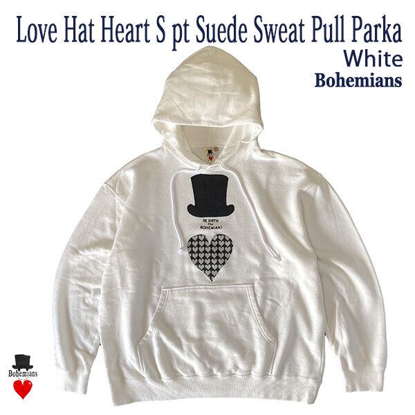 LOVE HAT HEART S PT SUEDE SWEAT PULL PARKA WHITE ラブハットハート プルパーカー ブラック ユニセックス BOHEMIANS ボヘミアンズ
