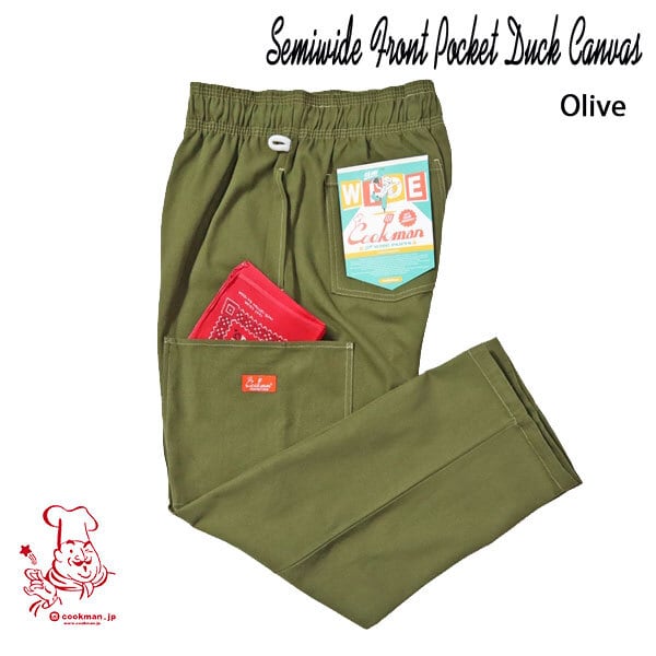 Chef Pants Semiwide Front Pocket Duck Canvas Olive セミワイド ダックキャンバス オリーブ UNISEX 男女兼用 COOKMAN クックマン イージーパンツ アメリカ
